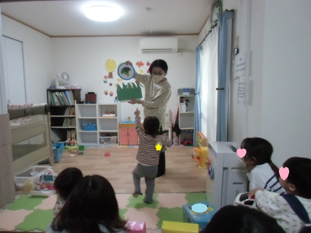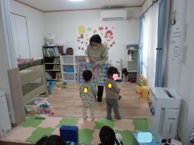 ![]() 今日のお誕生日会は1歳になるお子さん4名のお祝いをしました 手遊びが始まるとみんなママの膝の上に座って見てくれました そのまま絵本を2冊とパネルシアターも静かに見てくれましたよ 手形もお手てをパーに開いて上手に取れました お名前を呼ばれるとママと一緒に手を上げてお返事してくれましたね 小さかった赤ちゃんから、みんなしっかりお座りできるようになりましたね お誕生日おめでとうございます!! |